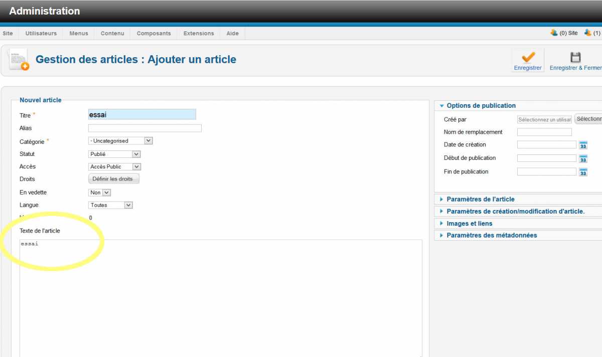 Si je choisi TINY MCE, je n'ai pas de problème, il s'affiche et je peux gérer normalement l'article