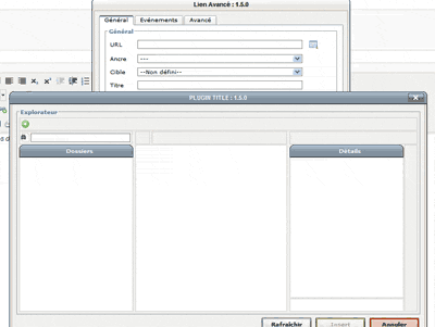 Quand je veux faire un lien avec le nouveau système JCE, le plugin de liens avancé ne m'affiche rien.