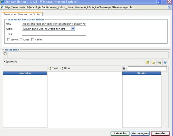 L'url inscrite est la suivante : index.php?option=com_content&task=view&id=75&Itemid=134