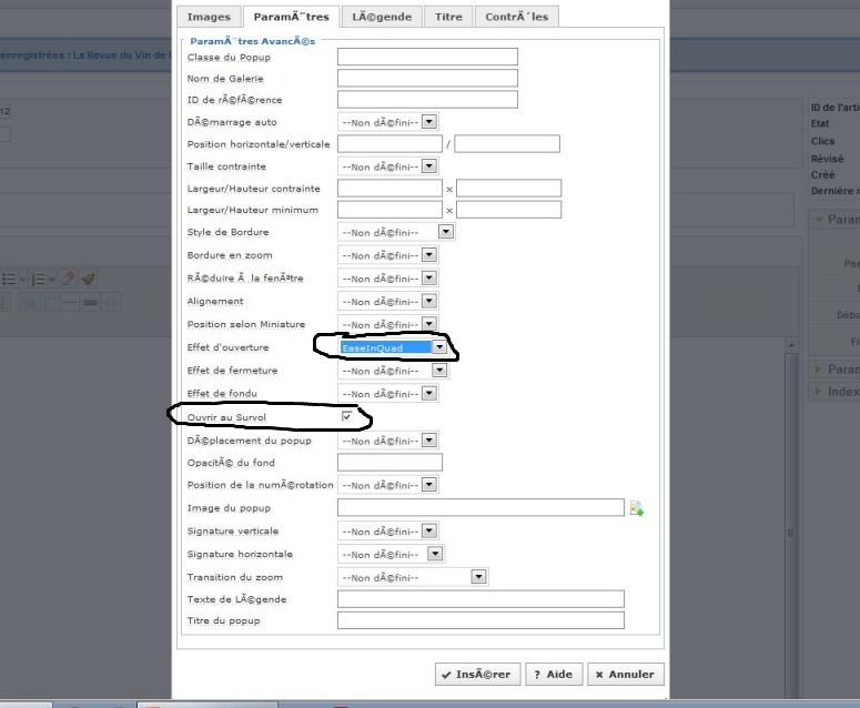 Les paramètres du profil utilisé du composant Highslide va permettre de faire en sorte qu'ils soient ceux par défaut ; le plugin JCE permet ensuite d'affiner ces réglages, si rien n'est précisé c'est ceux du profil qui sont utilisés.