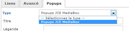 Je crée un nouvel article? J'écris du texte (ou je copie colle). Je sélectionne un mot, je fais un lien dessus en lui spécifiant l'URL et en choisissant "POPUPS JCE Mediabox" dans l'onglet "Popups".