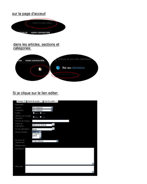 Il y a juste le "OPEN A USER AREA" de la page d'accueil dont je ne vois pas à quoi il correspond, mais c'est peut-être lié à ton template.