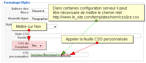 Allez maintenant dans l'administration de JCE et appelez la feuille jce.css