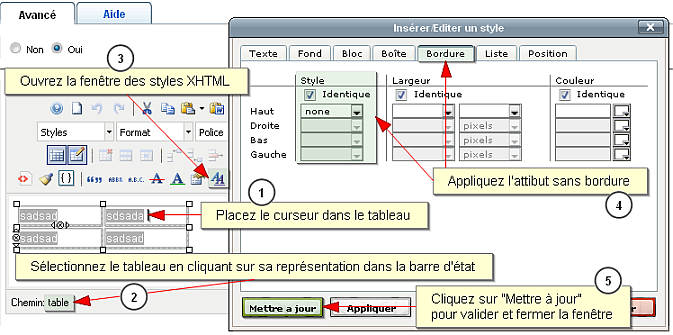 Dans la partie "GENERAL" d'un formulaire, je tente de mettre un tableau à 2 colonnes mais, lors de l'enregistrement, les bordures passent à 1 et elles apparaissent en front !