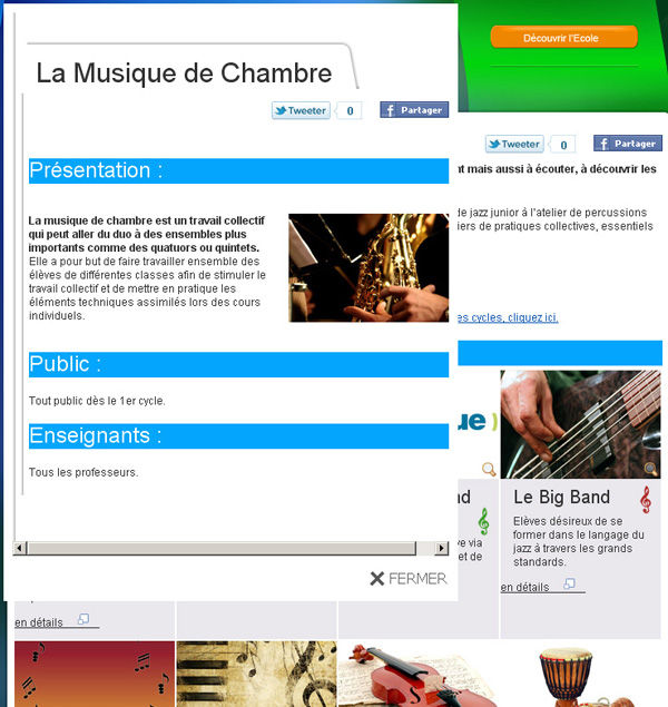 Voici ci-jointes 2 images qui illustrent le modèle d'affichage de mes articles et le modèle d'affichage de mes pop-up. On se rend donc compte qu'ils sont identique (mêmes éléments graphiques pour la titraille par exemple) mais sur le pop-up les traits sont moches et inutiles. Cela vient de classes sur mon template.css, par exemple : background:url("../images/contentheading_bg.png") no-repeat scroll right top transparent;