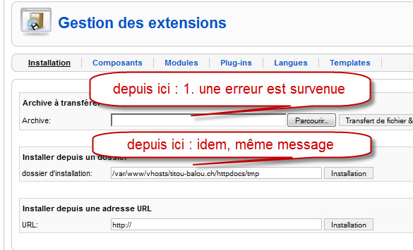 On ne peut plus installer aucune extensions, ni depuis une archive ni depuis le dossier tmp.