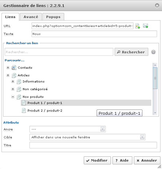 Merci pour ces infos... donc ça marche d'office si c'est un lien depuis jce. Mon problème se posait pour un lien entré manuellement... Perso je m'en suis sorti autrement...