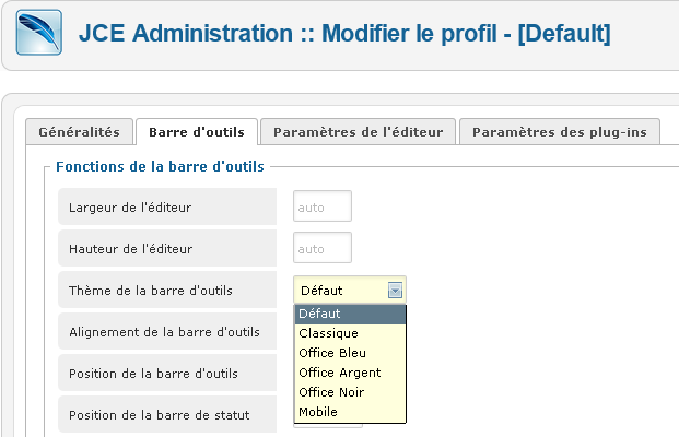 Couleurs Barre d'outils JCE