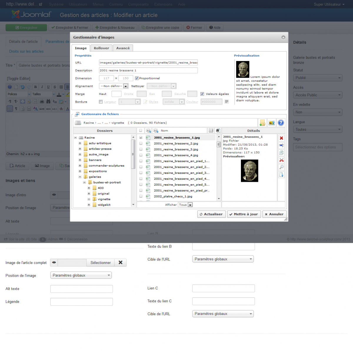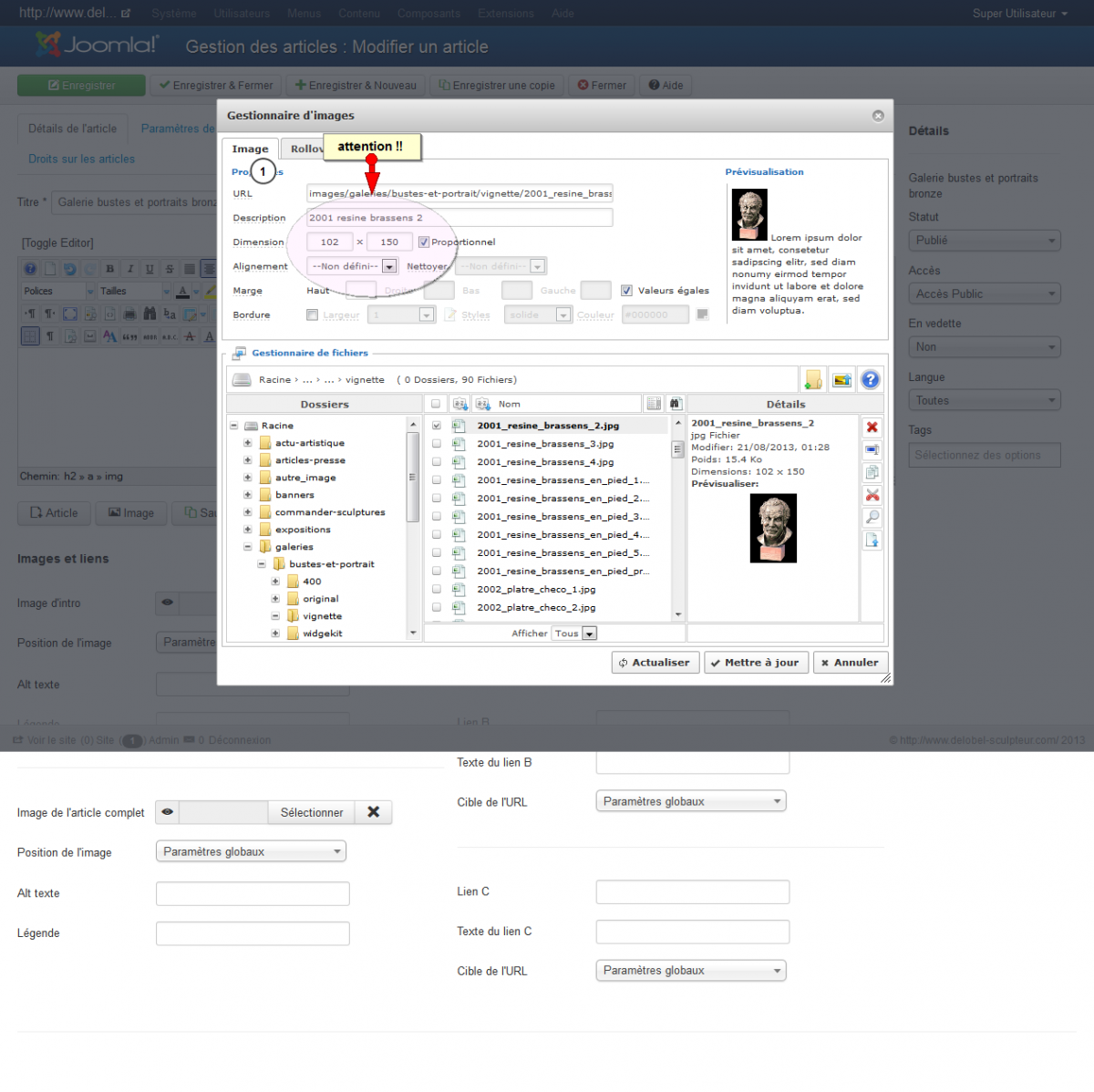 J'ai donc repris les images une par une et rentré la largeur pour chacune. il faut faire attention à ce que la taille de l'image n'apparaisse pas en grisé dans l'éditeur de JCE.