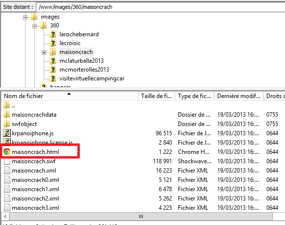 cf copies d'écran jointes : via ftp on voit les fichiers .html et pas dans le gestionnaire