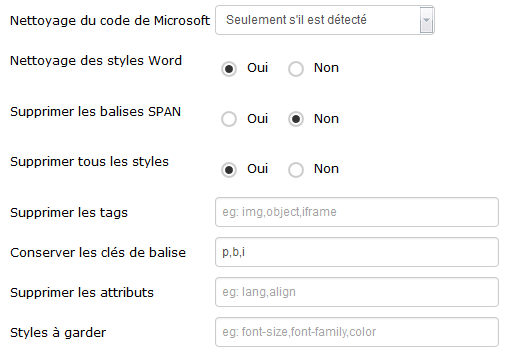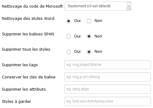 En fait j'ai mis le nettoyage Word par défaut dans le profil JCE, seuls les styles fonctionnant uniquement dans Word sont supprimés, tu ne peux pas faire de choix. J'avais par exemple des retraits au texte qui se sont conservés, ce qui pourrait être gênant.