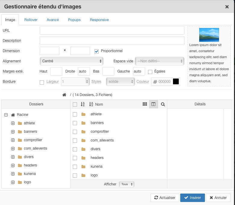 Impossibilité de charger des photos depuis JCE a été créé par Rocky Rider