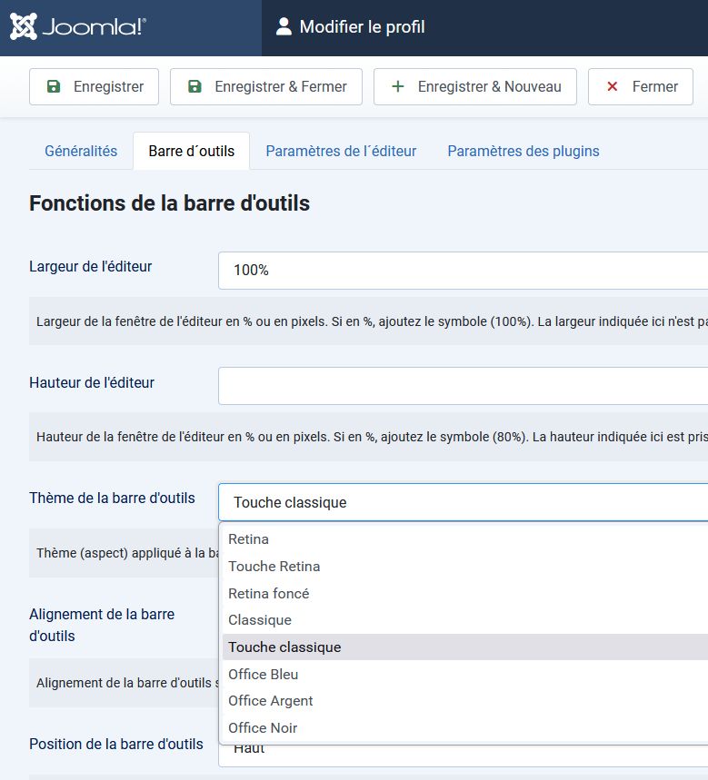 Il te faut éditer le profil JCE que tu utilises, puis aller dans l'onglet "Barre d'outils" et changer le "Thème de la barre d'outils" en "Classique" pour les petits icônes de couleur et "Touche classique" pour les plus grandes icônes de couleur